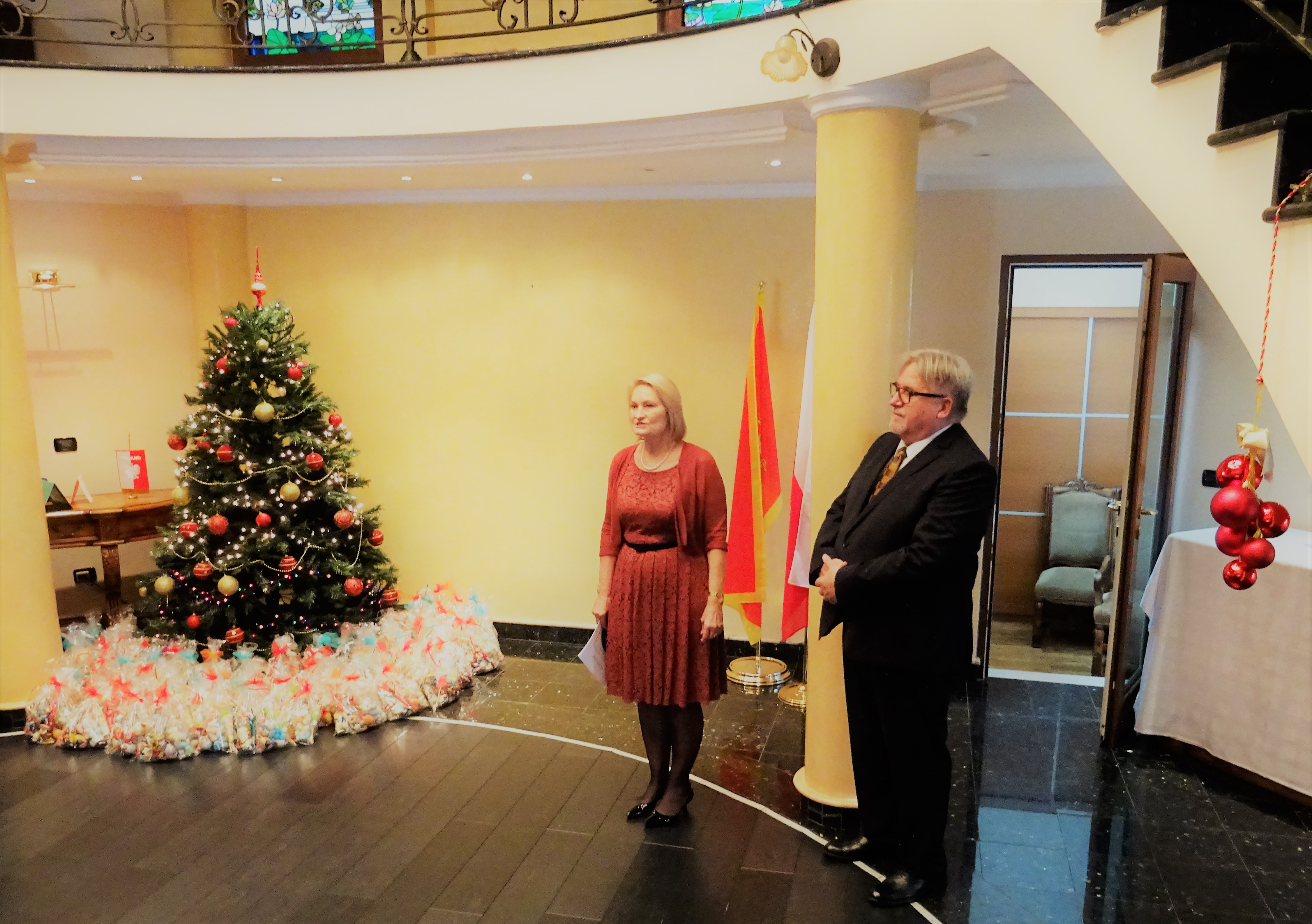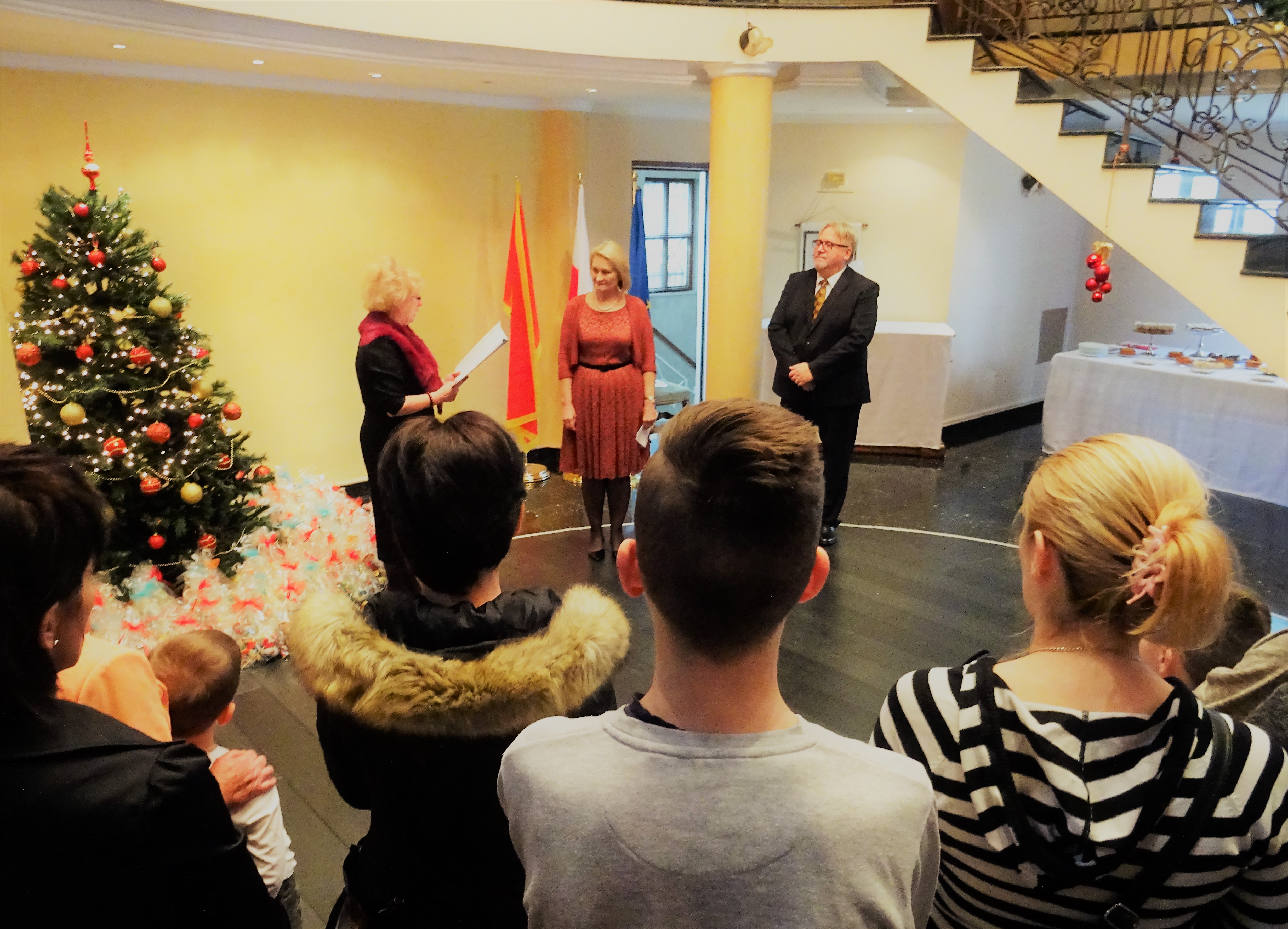 Pani ambasador w imieniu własnym i całego zespołu ambasady, z okazji zbliżajacych się świąt Bozego Narodzenia i Nowego 2018 Roku, złożyła wszystkim obecnym najserdeczniejsze życzenia. Życzyła przede wszystkim przeżywania świąt w zdrowiu, radości i ciepłej rodzinnej atmosferze, i dodała : „ a rok 2018 niech będzie dla Wszystkich czasem pokoju oraz realizacji osobistych zamierzeń ”.