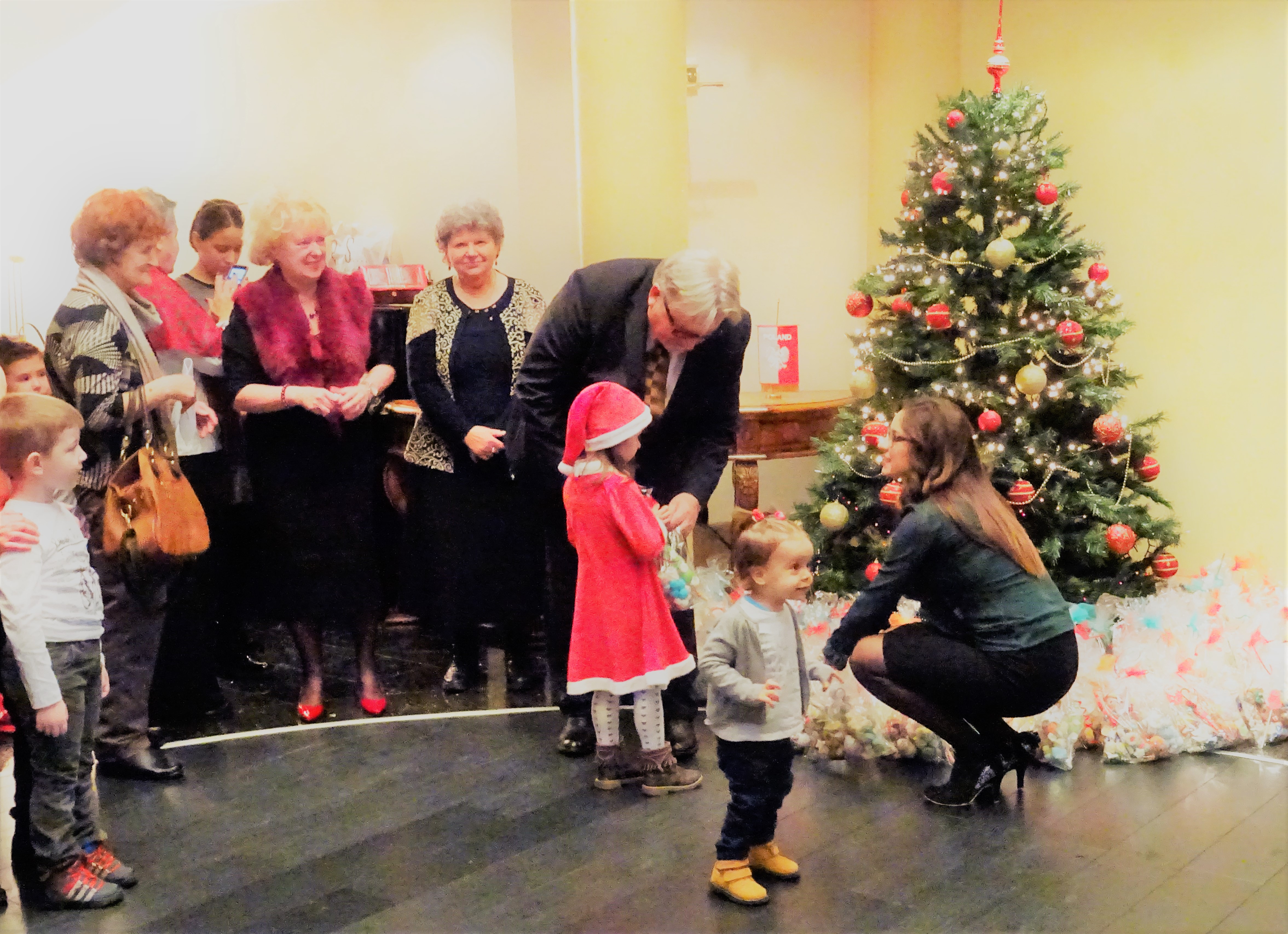W drugiej części naszego spotkania głos zabrał pan konsul RP, Ryszard Michalski, który serdecznie przywitał naszych najmłodszych. Pod choinką, udekorowaną kolorowymi bombkami było mnóstwo paczuszek ze słodyczami, które wręczył dzieciom i życzył im, aby święta były jakby z bajek, a Mikołaj niech przyniesie im mnóstwo prezentów. Roześmiane buzie dzieci i ta prawdziwie bożonarodzeniowa atmosfera wprawiła wszystkich we wspaniały nastrój. Dzieliliśmy się opłatkiem, który z Polski przywiozła pani Wanda, śpiewaliśmy kolędy i pastorałki. Pani Teresa wręczyła wszystkim nowy numer czasopisma „Głos Polonii”(Nr 17/2017).