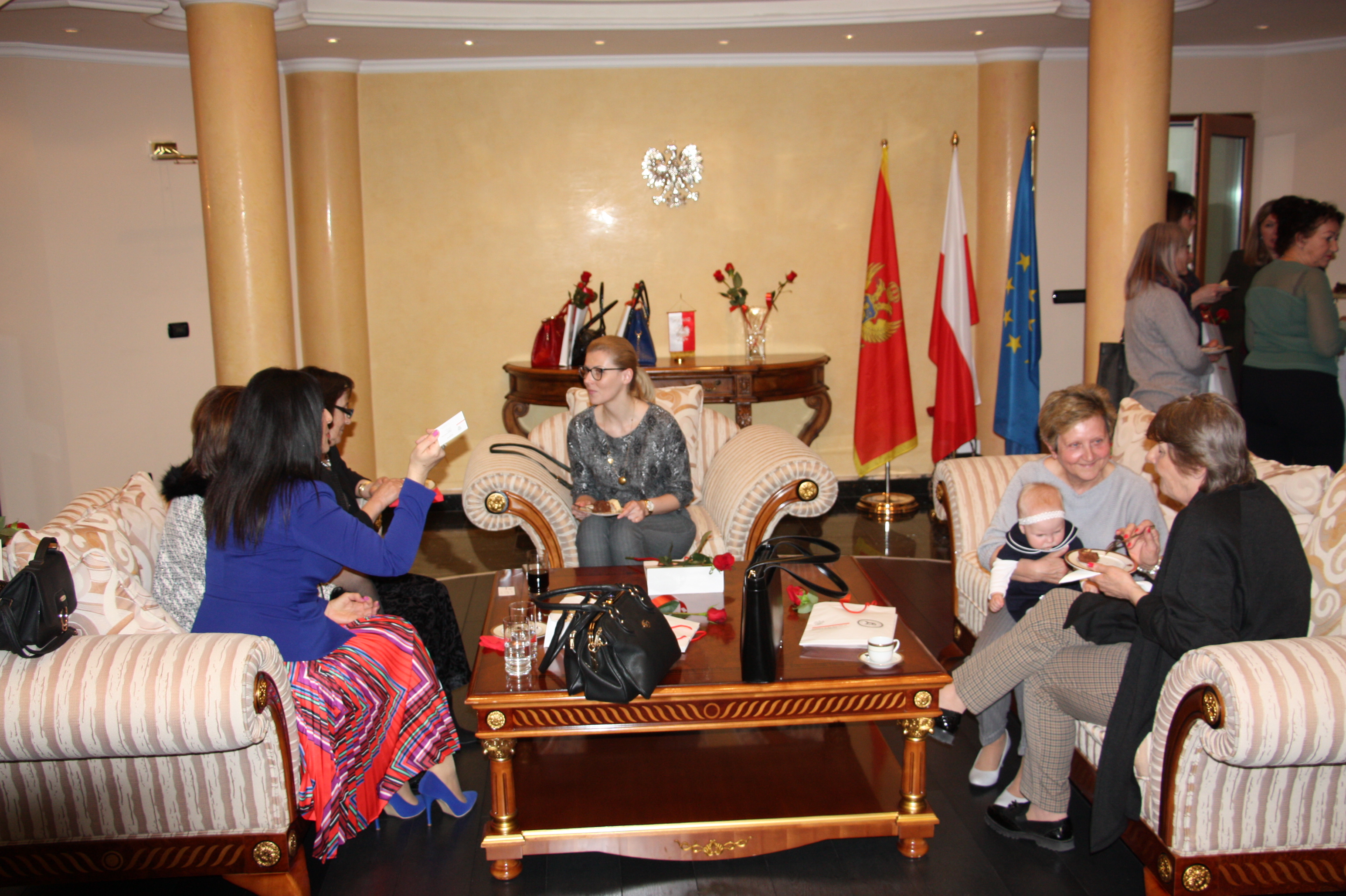 Ambasada RP w Podgoricy w dniu 6 marca br. zorganizowała spotkanie „płci pięknej” w swojej siedzibie. Na uroczystości obecne były Polki mieszkające w Czarnogórze. Życzenia obecnym paniom złożył Ambasador RP w Czarnogórze, Artur Dmochowski, a wspaniałe czerwone róże wręczył pan konsul RP, Ryszard Michalski. Spotkanie miało charakter uroczysty i było wspaniałą okazją, aby przenieść się pamięcią wstecz i  powspominać – jak obchodziłyśmy 8 marca w Polsce, a jak w Czarnogórze?