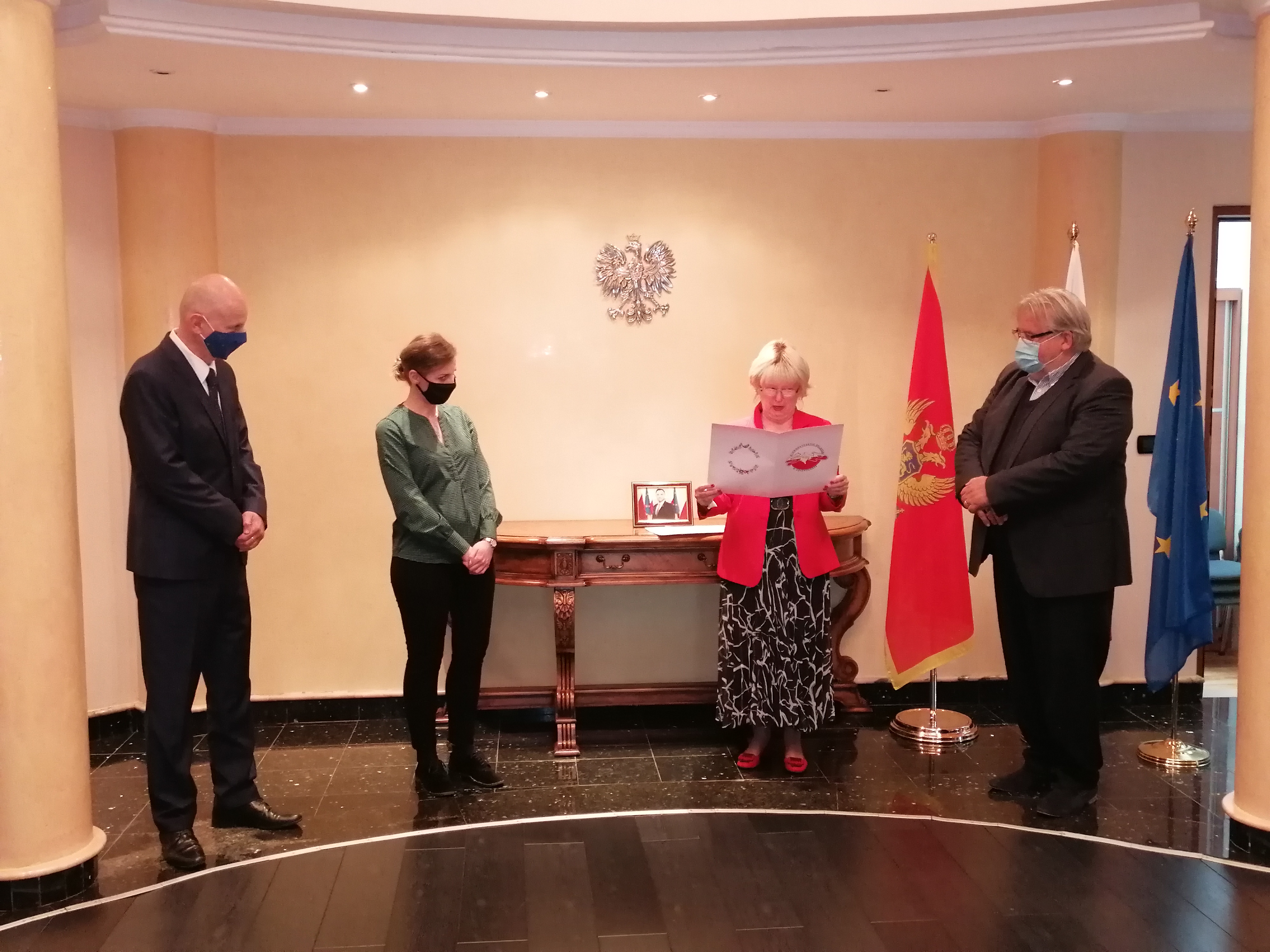 Myśląc o całej polskiej społeczności w Czarnogórze, zawsze będę czuć dumę, że mamy tu tak godnych i wspaniałych przedstawicieli Polski. Wielokrotnie byłam świadkiem Państwa patriotycznych postaw i niezmiennie silnych związków z Ojczyzną. Wiem, że życie na emigracji to duże wyzwanie oraz tęsknota za wszystkim, co pozostało w rodzinnych stronach. Dlatego tym bardziej dziękuję za to, że tak dzielnie radzą sobie Państwo z emigracyjną nostalgią oraz że są najlepszą z możliwych wizytówek Polski w Czarnogórze.