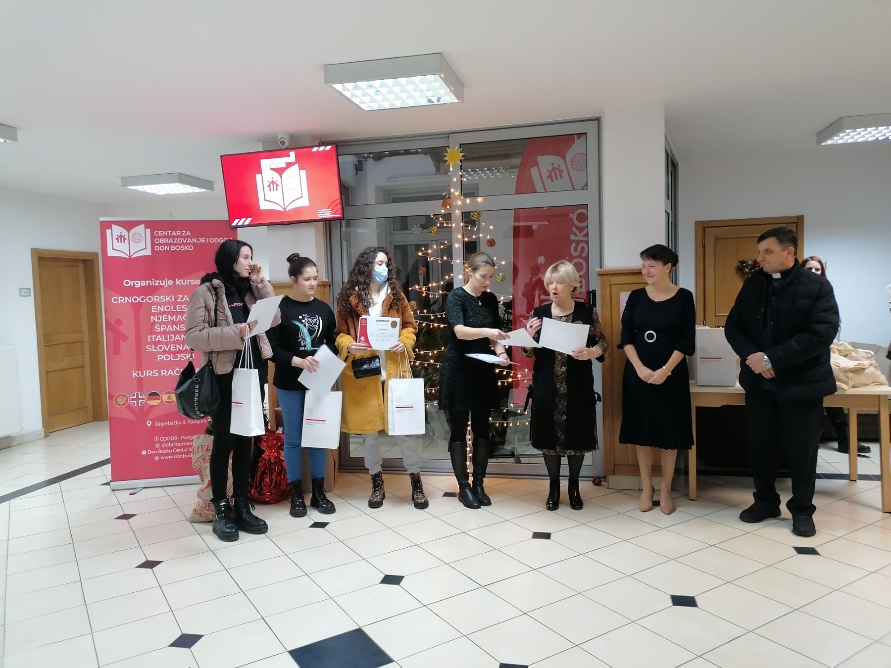 W dniu 22 grudnia 2021 r. w Centrum Don Bosko w Podgoricy odbyła się uroczystość wręczenia certyfikatów, dyplomów i nagród uczestnikom kursu. Dyrektor szkoły Don Isidor Lukić podziękował wszystkim za przybycie, a także za udział w kursach j.hiszpańskiego, niemieckiego, angielskiego i polskiego.