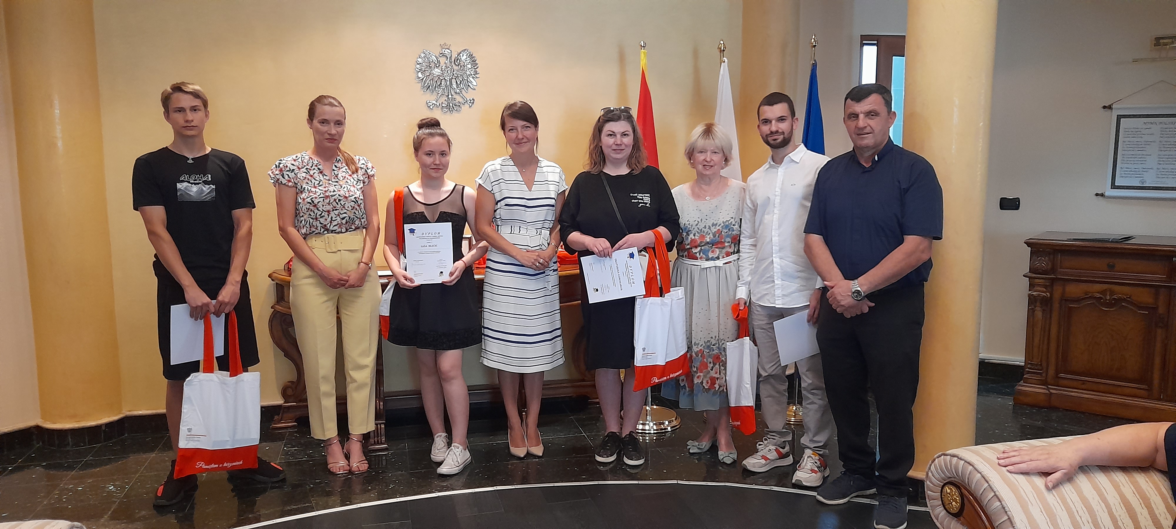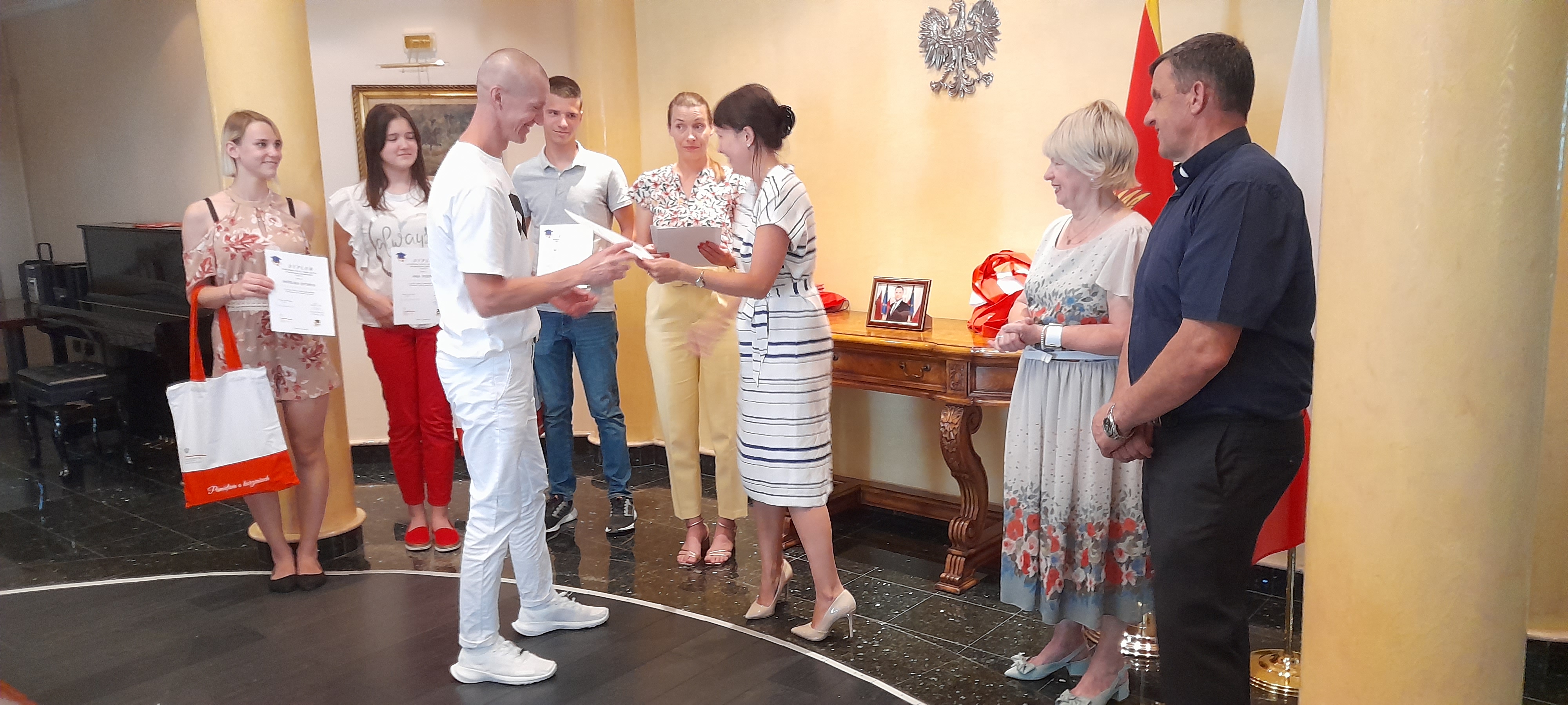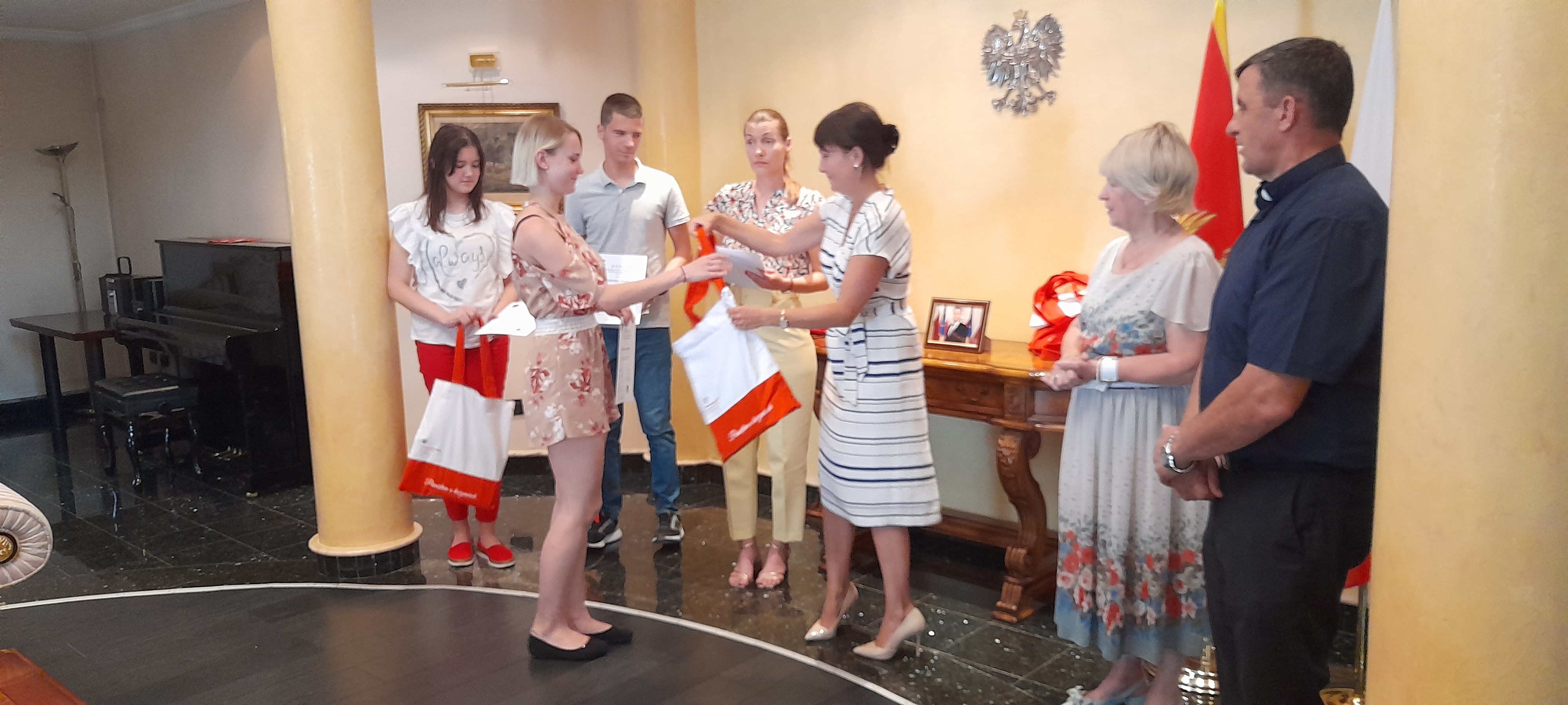 Drobne upominki kursantom wręczyła pani Monika Dmochowska, konsul RP, która w swoim wystąpieniu pogratulowała im na zdobytej wiedzy, a pani Wandzie i Marcie podziękowała za przygotowanie i przeprowadzenie kursu.