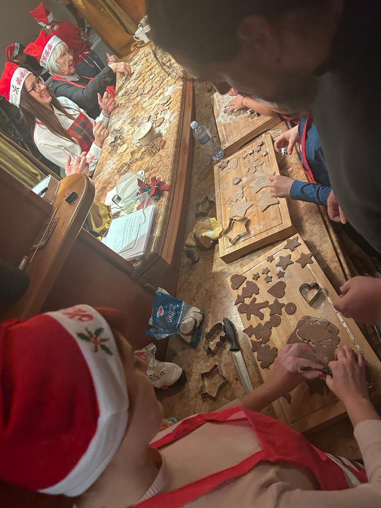 Przy kolędzie, zimowej herbacie, wspólnie wycinano, pieczono i ozdabiano ciasta, ciasteczka i pierniczki oraz opowiadano o polskich tradycjach i przygotowaniach do Świąt Bożego Narodzenia.