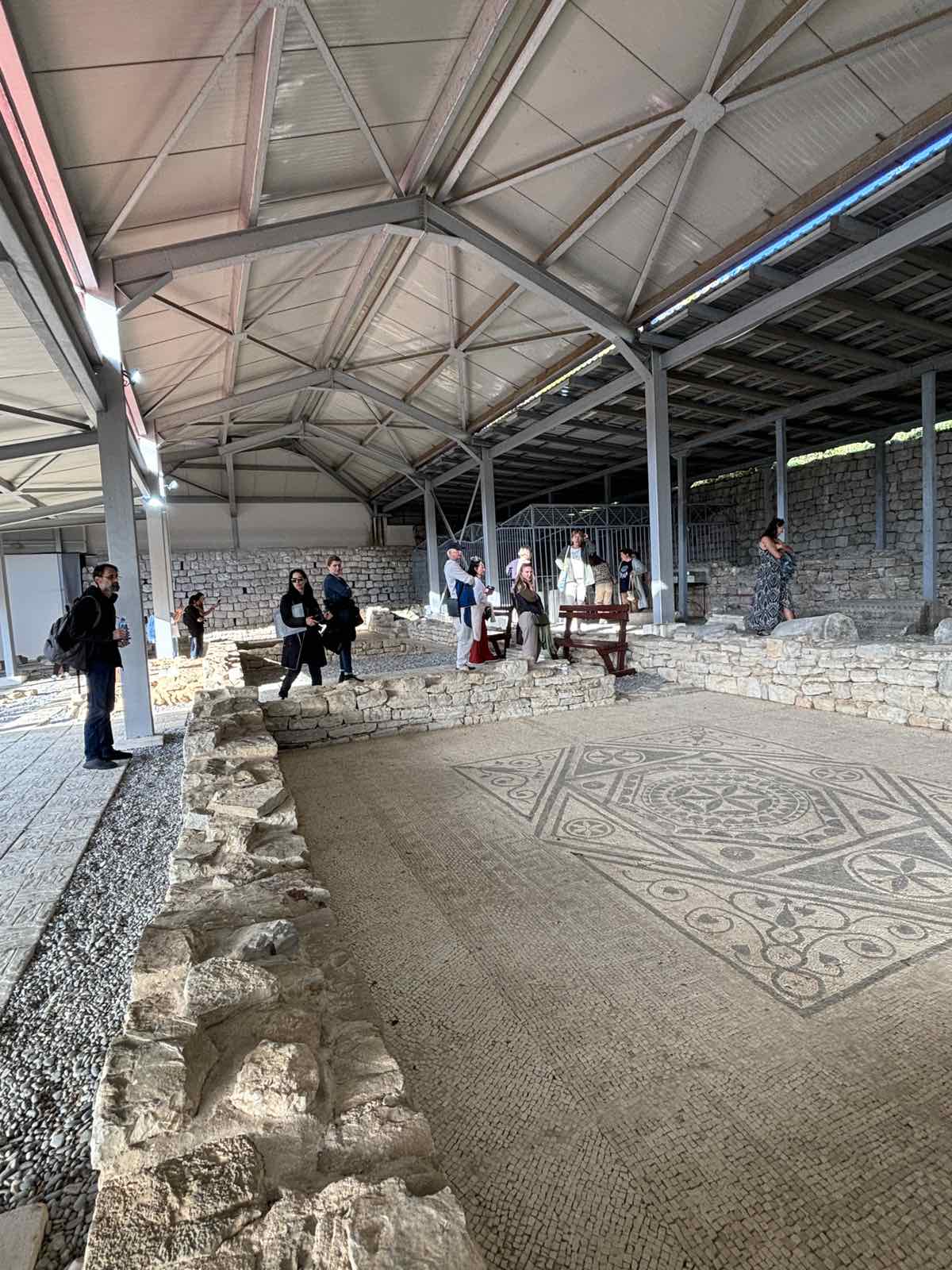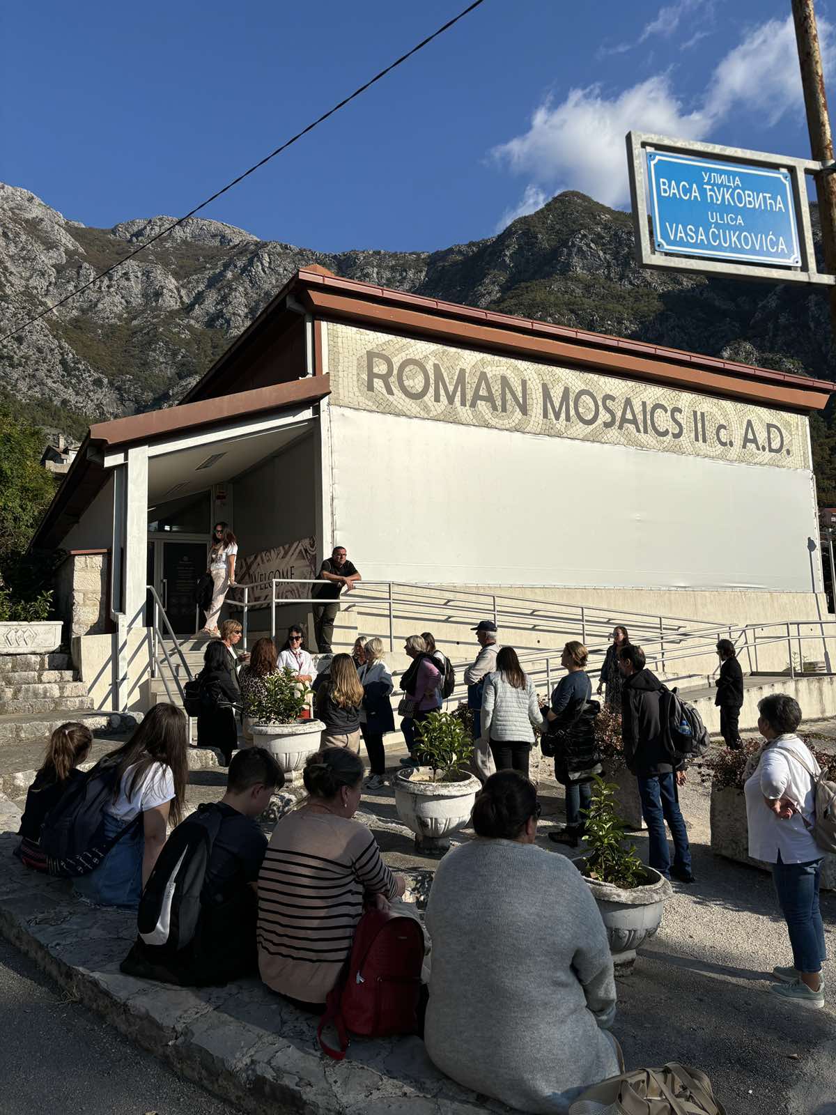 Następnie wyruszyliśmy w dalszą drogę do Risan. Wraz z panią przewodniczką Dorotą zwiedziliśmy muzeum archeologiczne, w którym znajduje się jedna z najciekawszych rzymskich mozaik na świecie. Ciekawostką jest, że zachowane mozaiki były znane już w XIX wieku, a współczesne ruiny przekształcone są w muzeum. W XXI wieku prace archeologczne w Risan prowadzili polscy archeolodzy z Uniwersytetu Warszawskiego.