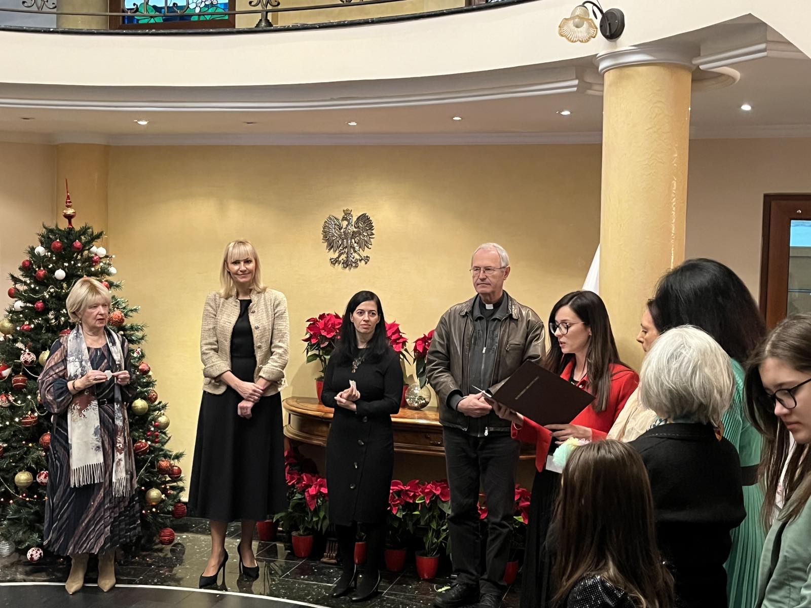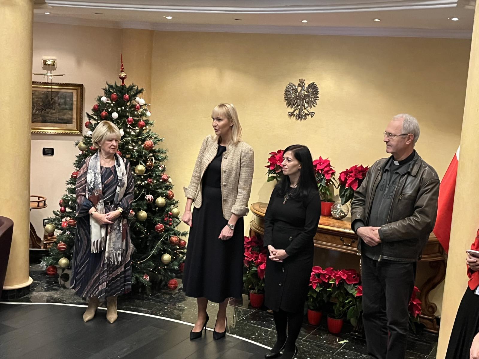 Pani Małgorzata Łakota-Micker w imieniu własnym oraz całego zespołu ambasady z okazji świąt Bożego Narodzenia i nadchodzącego 2025 roku złożyła wszystkim obecnym najserdeczniejsze życzenia. Życzyła przede wszystkim przeżywania świąt w zdrowiu, radości, ciepłej, rodzinnej atmosferze. Do życzeń przyłączyła się pani konsul i prezes Stowarzyszenia Polaków w Czarnogórze.