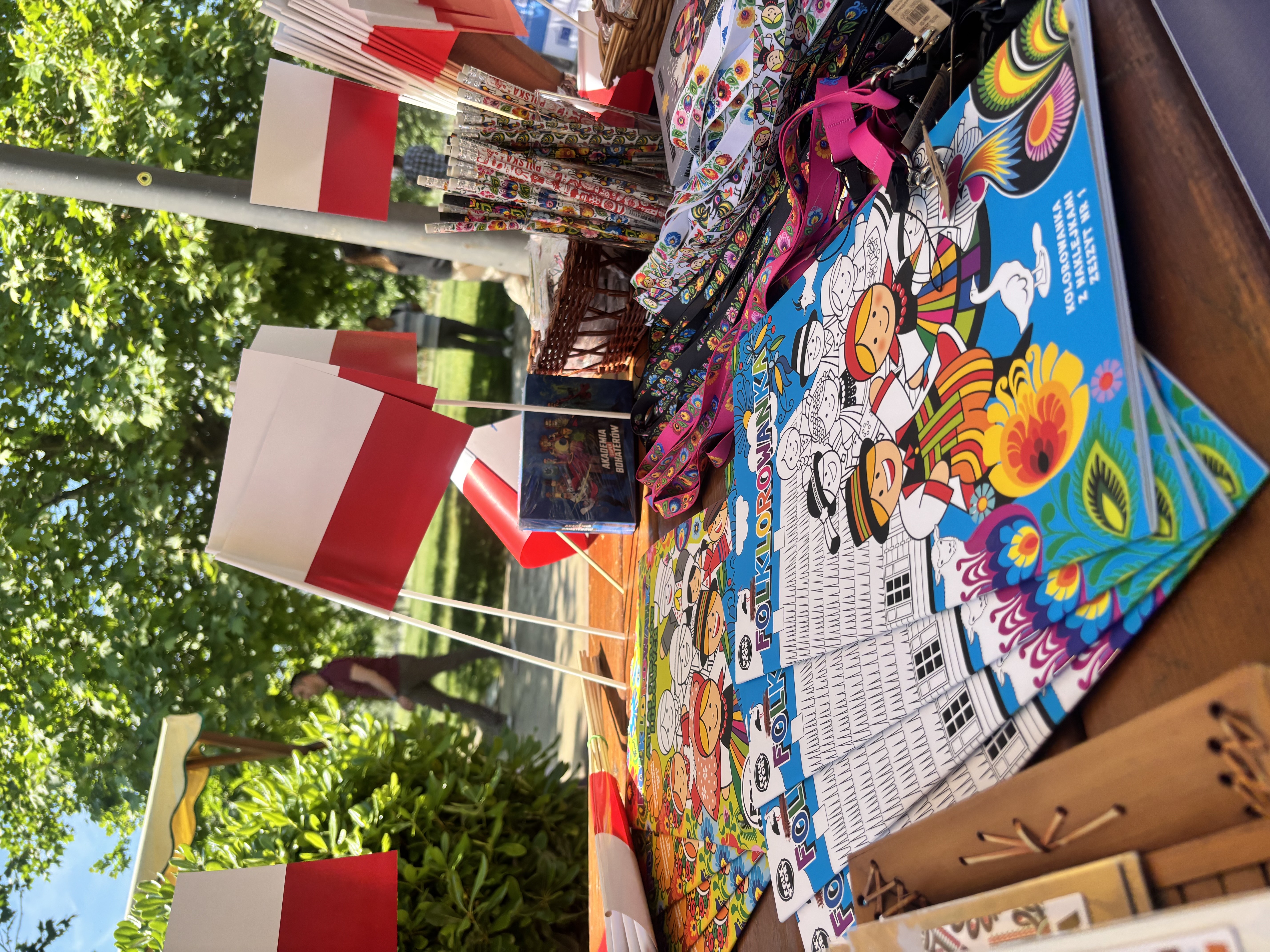 Na stoisku znalazły się różne przedmioty charakterystyczne dla polskiej kultury: magnesy z Zakopanego i Krakowa, kredki i kolorowanki z motywami polskiego folkloru, książki, płyty CD z polską muzyką, polskie książki, długopisy...