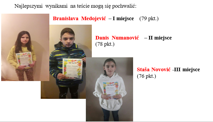 Do egzaminu końcowego –I semestr - przystąpiło 15  uczniów kursu. Test składał się z 4 części: I-Tłumaczenie zdań z j.czarnogórskiego na j. polski, II-Odpowiedzi na pytania,III-Formułowanie pytań i IV-Uzupełnianie zdań dowolną treścią.