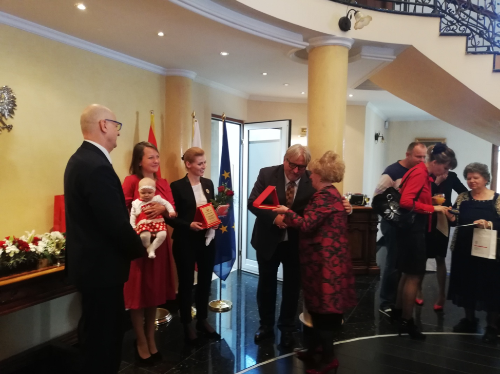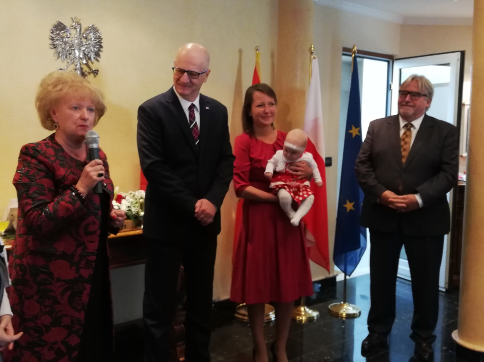 Podkreśliła także ogromną rolę Ambasady RP, która włącza się w działalność polonijną Stowarzyszenia, wspierając  nasze inicjatywy, finansując nasze różne przedsięwzięcia dot. pielęgnowania tożsamości narodowej, naszych tradycji, a szczególnie w pielęgnowanie języka ojczystego. Panu konsulowi RP, Ryszardowi Michalskiemu i pani Annie Kasprzak, II Sekr. Ambasady RP, pani prezes wręczyła plakiety z podziękowaniem za wspaniałą współpracę ze Stowarzyszeniem.
