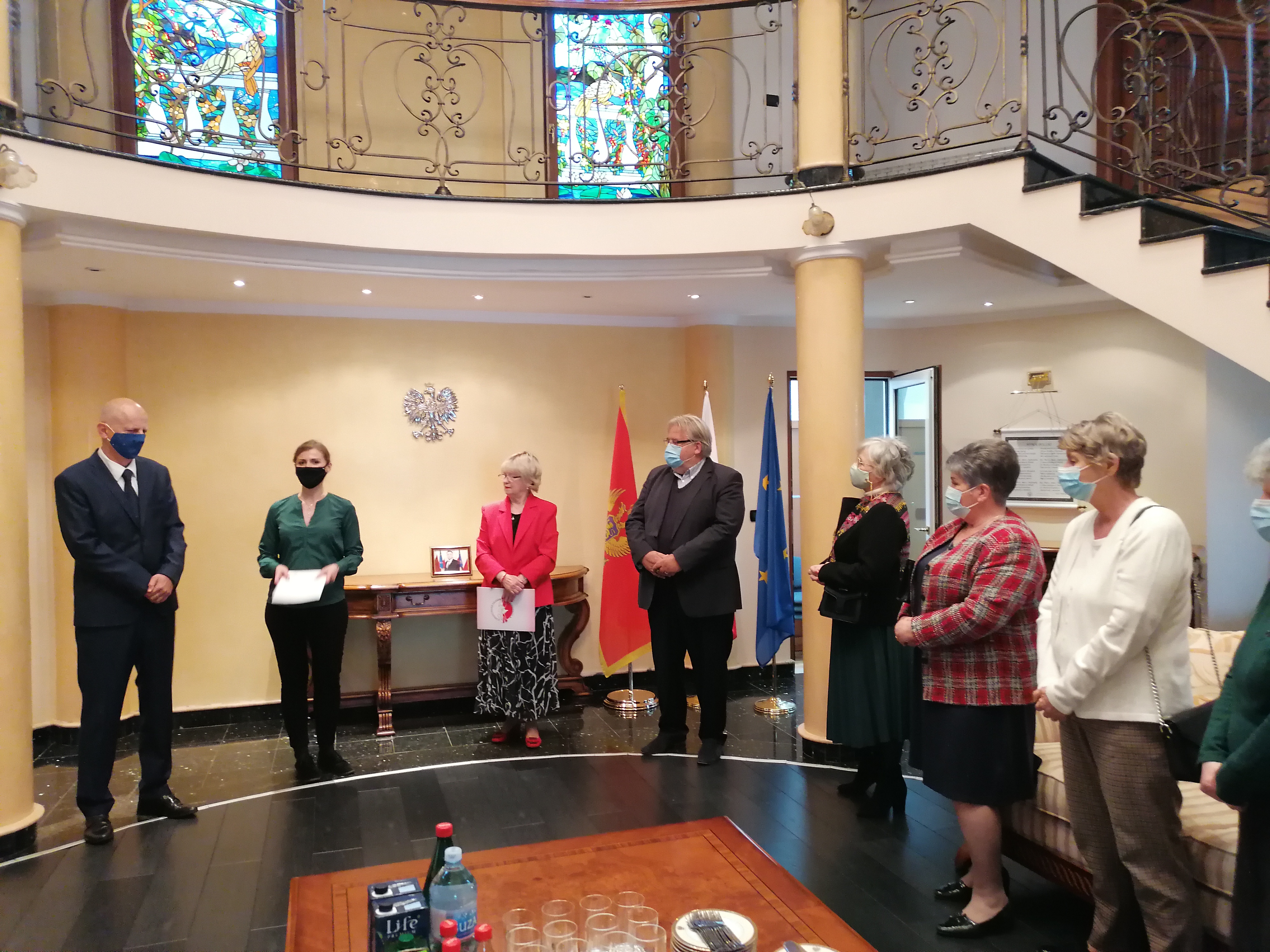 W związku z zakończeniem Pani misji dyplomatycznej w Czarnogórze członkowie Stowarzyszenia Polaków w Czarnogórze serdecznie dziękują za Pani dotychczasową, owocną i wspaniałą współpracę z czarnogórską Polonią, za wspieranie wszystkich naszych inicjatyw i zamierzeń, za obecność na wielu uroczystościach i imprezach na terenie całej Czarnogóry.