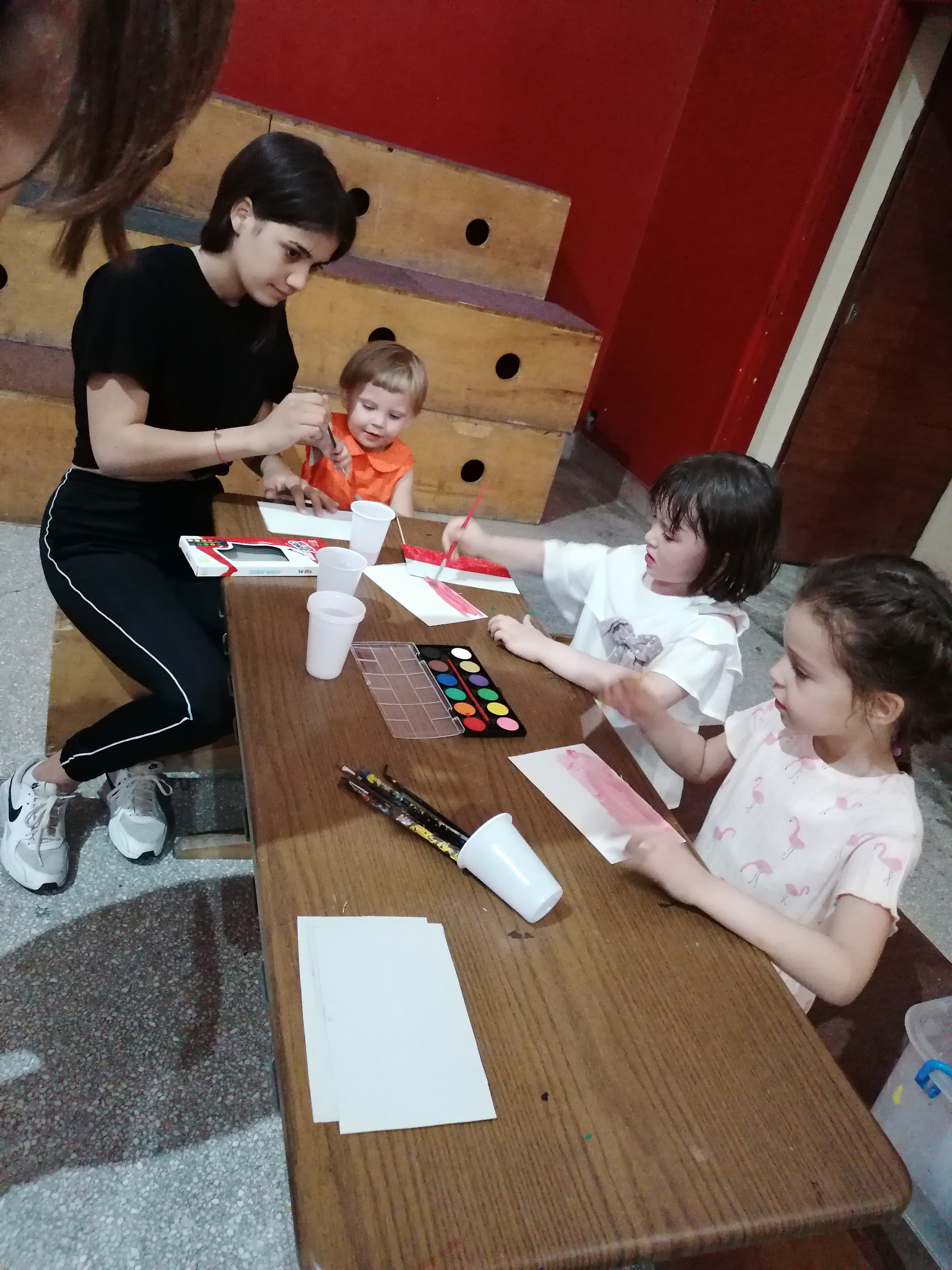 Nie obyło się bez kanapeczek, soczków i domowej pizzy. Na zakończenie naszego spotkania dzieci zostały zaproszone do młodzieżowego cyrku, gdzie mogły zobaczyć różne akrobacje i żonglowanie.