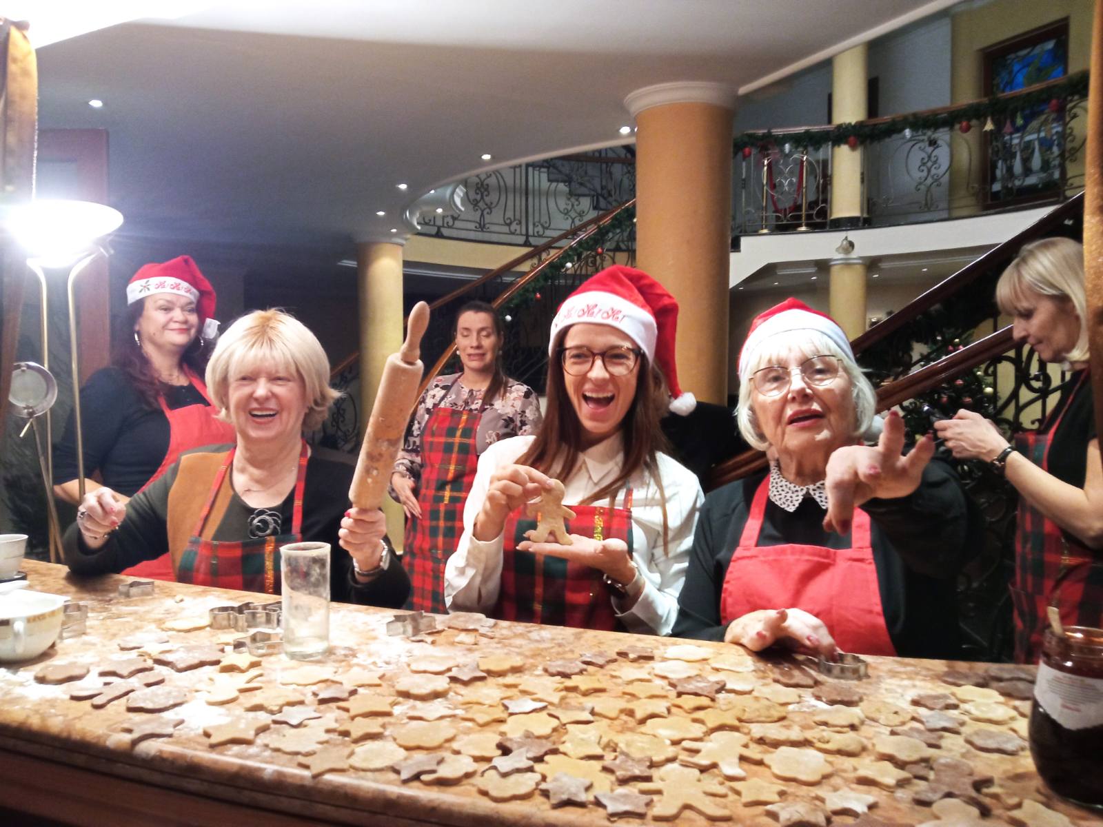 Upieczono 10 dużych ciast i około 400 pierniczków, którymi można było delektować się na koniec warsztatów, a także i na spotkaniu z okazji spotkania bożonarodzeniowego następnego dnia.