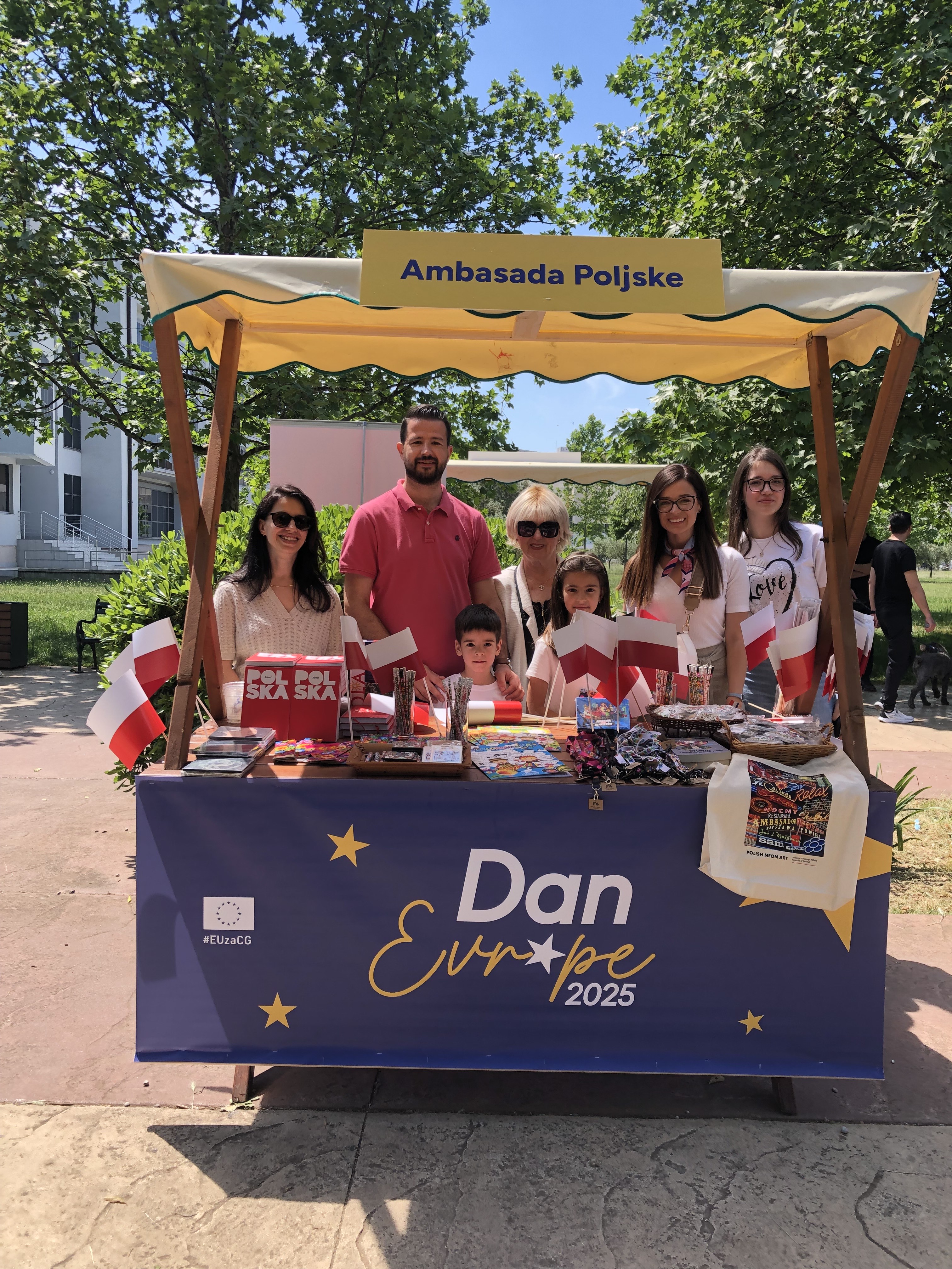 Dnia 10 maja 2025 roku razem z Delegaturą Unii Europejskiej w Podgoricy, Ambasada Polska na czele z panią konsul Pauliną Rasińską-Sawłowicz i Stowarzyszeniem Polaków w Czarnogórze z przewodniczącą Wandą Vujisić świętowaliśmy Dzień Europy.