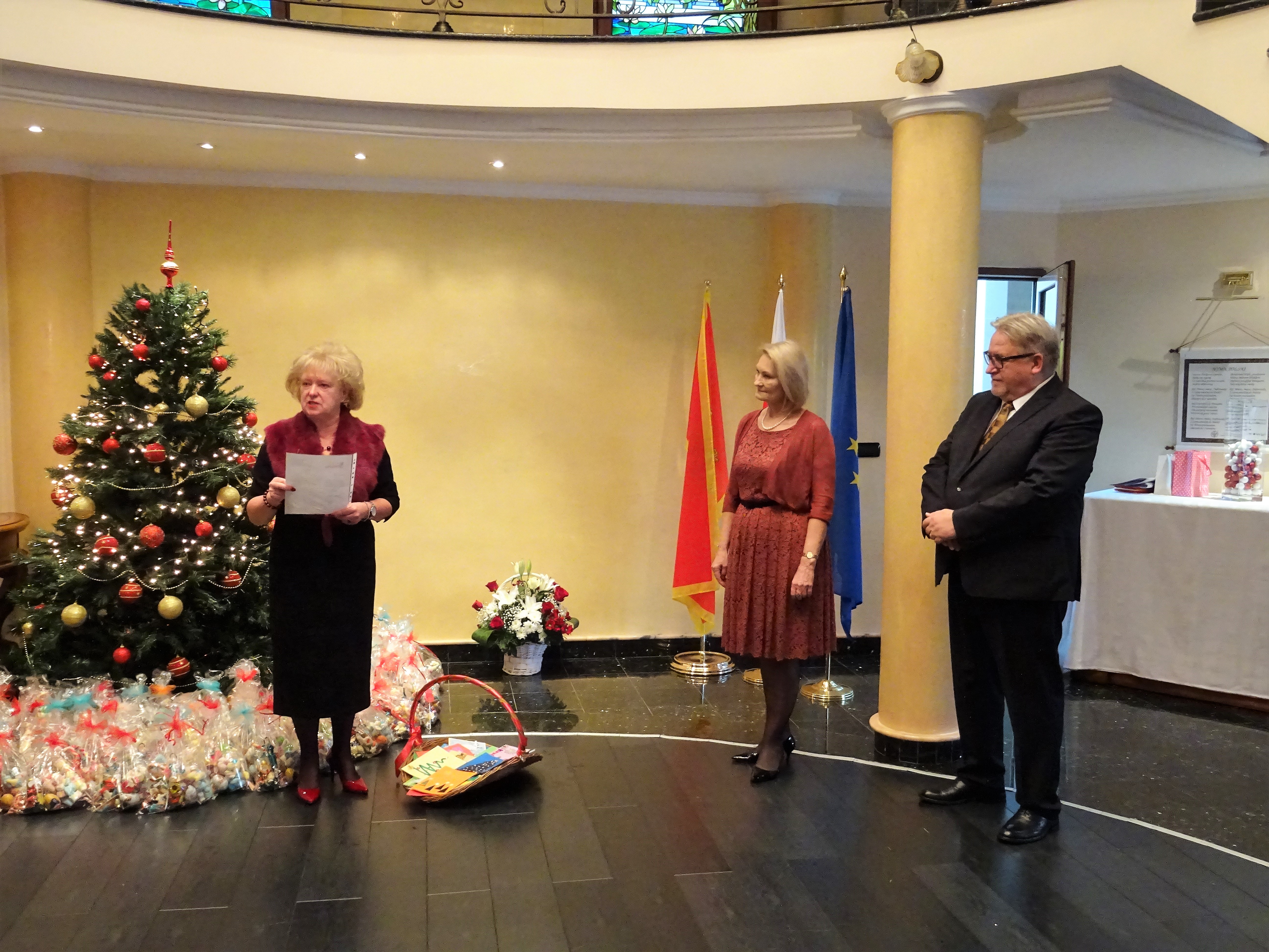 Pani ambasador w imieniu własnym i całego zespołu ambasady, z okazji zbliżajacych się świąt Bozego Narodzenia i Nowego 2018 Roku, złożyła wszystkim obecnym najserdeczniejsze życzenia. Życzyła przede wszystkim przeżywania świąt w zdrowiu, radości i ciepłej rodzinnej atmosferze, i dodała : „ a rok 2018 niech będzie dla Wszystkich czasem pokoju oraz realizacji osobistych zamierzeń ”.