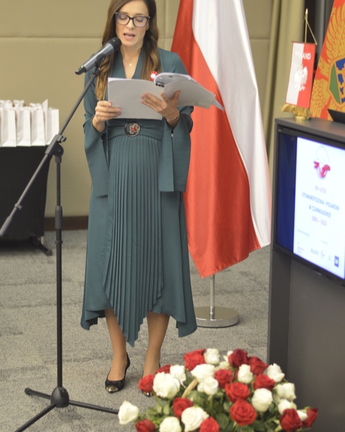 Gratulujemy wszystkim odznaczonym, którzy w tym momencie zostali obdarowani schedą polskości, to także motywacja do dalszej pracy na rzecz krzewienia polskiej kultury, obyczajów i oczywiście języka polskiego, a także promocja Polski w różnych jej formach i działaniach. Budujcie i dalej dobre imię Polski poza jej granicami, tu w Czarnogórze, gdzie reprezentujemy nasz kraj, naszą Ojczyznę-Polskę.