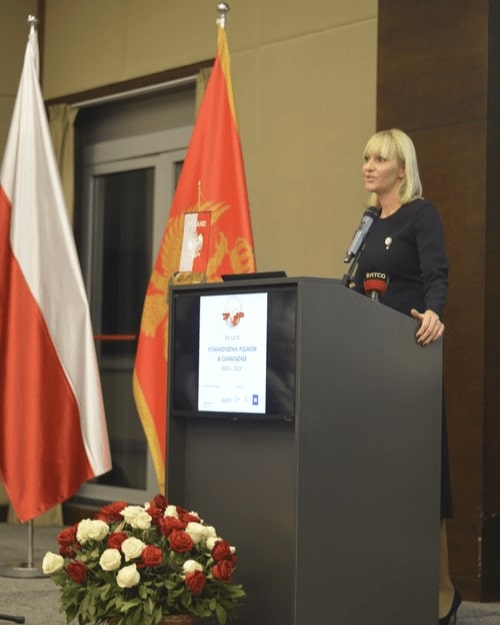 W imieniu własnym i Stowarzyszenia serdecznie podziękowała pani Prezes, która zapewniła wszystkich tu obecnych, że dołoży wszelkich starań aby działalność Stowarzyszenia rozwijała się w kierunku promowania dobrego imienia Polski w Czarnogórze. Te wysokie odznaczenia motywują nas ale i jednocześnie zobowiązują do podejmowania nowych wyzwań w dalszej naszej pracy na rzecz krzewienia polskości na obczyźnie.