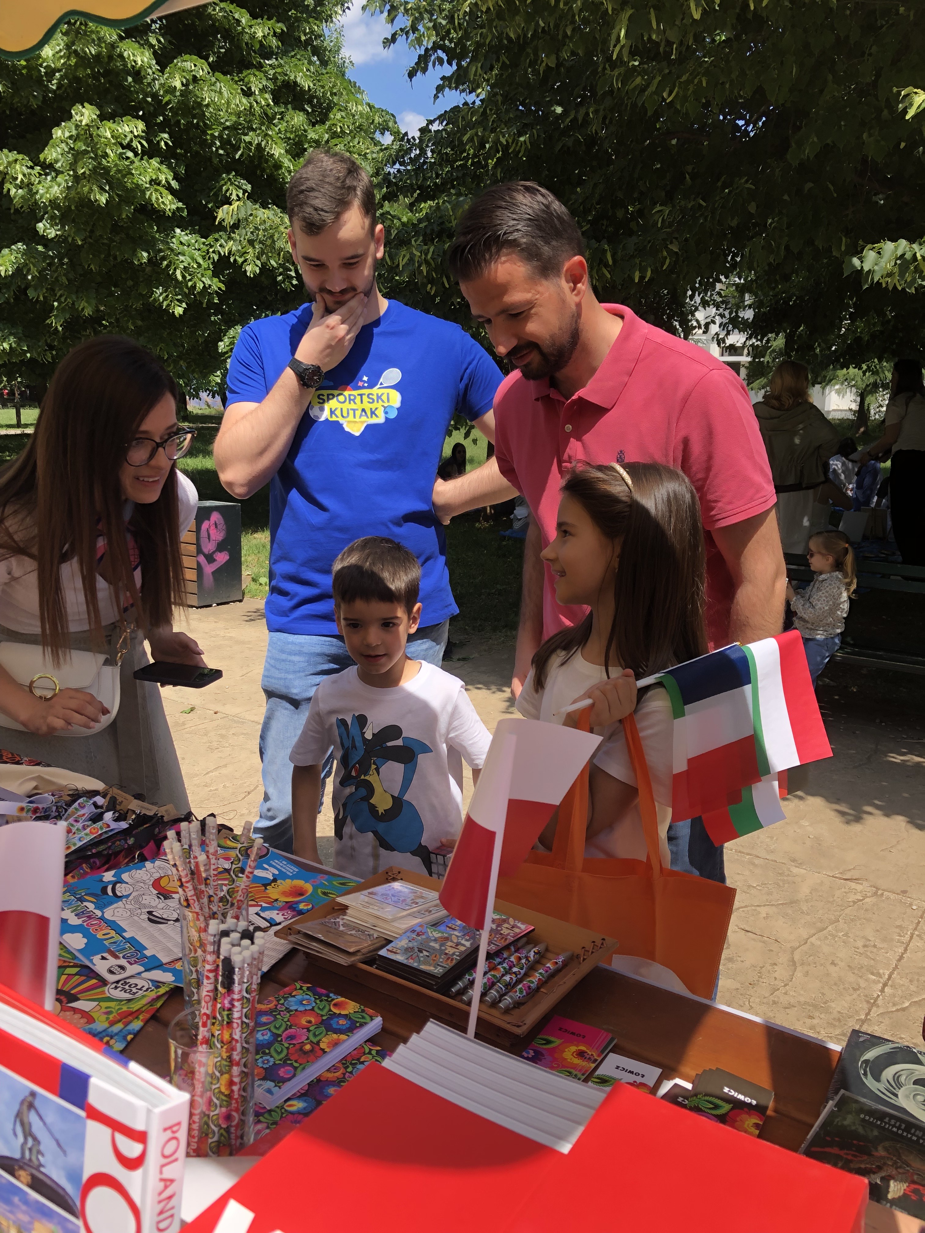 Na stoisku znalazły się różne przedmioty charakterystyczne dla polskiej kultury: magnesy z Zakopanego i Krakowa, kredki i kolorowanki z motywami polskiego folkloru, książki, płyty CD z polską muzyką, polskie książki, długopisy...